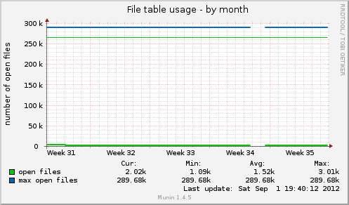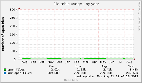 The maximum supported number of open files. Tune by modifying /proc/sys/fs/file-max.